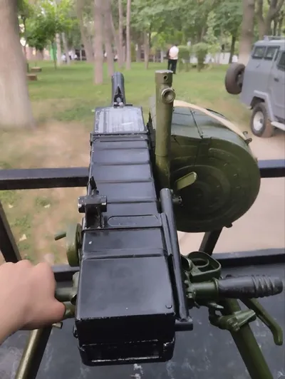 Крупнокалиберный пулемет НСВ, оснащенный дульной насадкой «Шишка» и целеуказателем «Титан», является разработкой белорусской компании «Стратегические технологии».