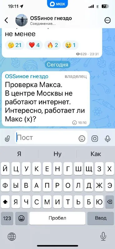 Пишут, что при отключении мобильного интернета в Москве доступны сервисы VK, Яндекса, Госуслуг и Макс. Нет, Макс (х) не доступен. Я проверяла сегодня и 7 марта. Висит