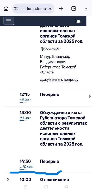 Два дня с перерывом в 1170 минут Сегодня в театре Драмы начнет работу 51-ое собрание Законодательной думы Томской области. Главный вопрос сегодняшнего дня – отчет губернатора Владимира Мазура. Он про