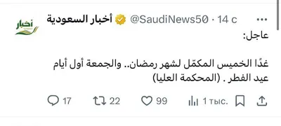 ❗️ ПРАЗДНИК ‘ИД АЛЬ-ФИТР (УРАЗА БАЙРАМ) БУДЕТ 20 МАРТА В ПЯТНИЦУ Сегодня в Саудовской Аравии наблюдали за новолунием месяца шаууаль в соответствии с известным хадисом Ибн ‘Аббаса ☁️: صوموا لرؤيته و