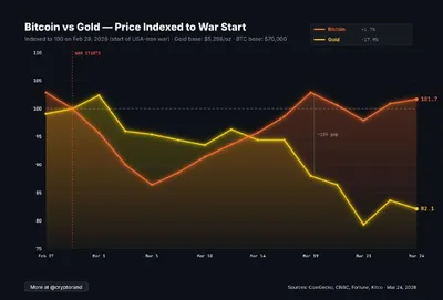 📈 С момента начала войны в Иране зол��то упало уже на 18%, в то время как BTC растет ⭐ - поддерживайте канал реакцией ✔️ - подписывайтесь на Крипто Твиты