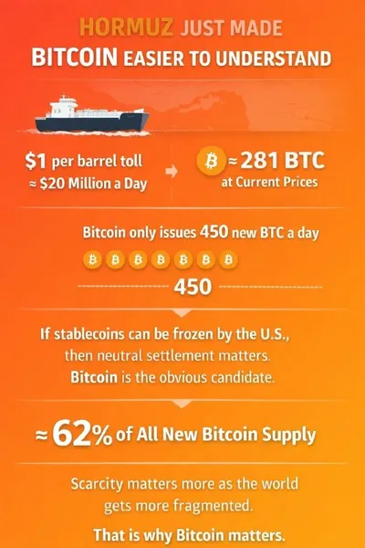 🛍 Криптаны уже подсчитали, сколько нового предложения BTC может поглощать Иран, если начнет принимать биткоины в качестве платы за проход через Ормузский пролив $1 пошлины за каждый баррель нефти —