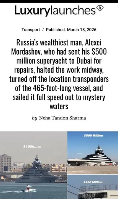 Форбс N2 Алексей Мордашов не доделал в Дубае ремонт своей суперъяхты Nord стоимостью 500 миллионов — этому помешал ближневосточный кризис. Работы прервали на полпути, команда отключила транспондеры, о