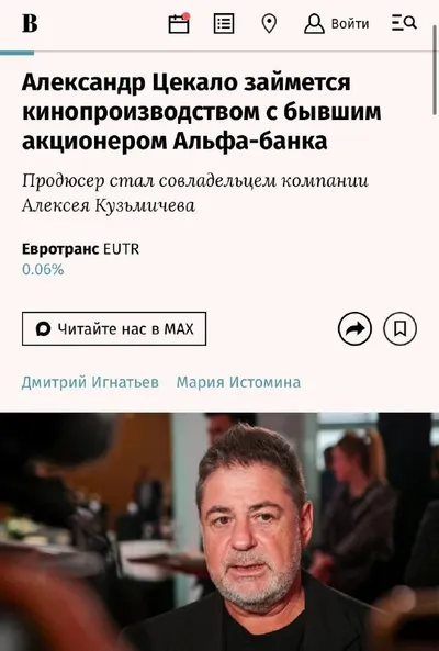Форбс N22 и партнёр Фридмана по «Альфе» Алексей Кузьмичёв будет снимать кино вместе с продюсером Александром Цекало. Бывший участник кабаре-дуэта «Академия» приобрёл у миллиардера треть его компании «