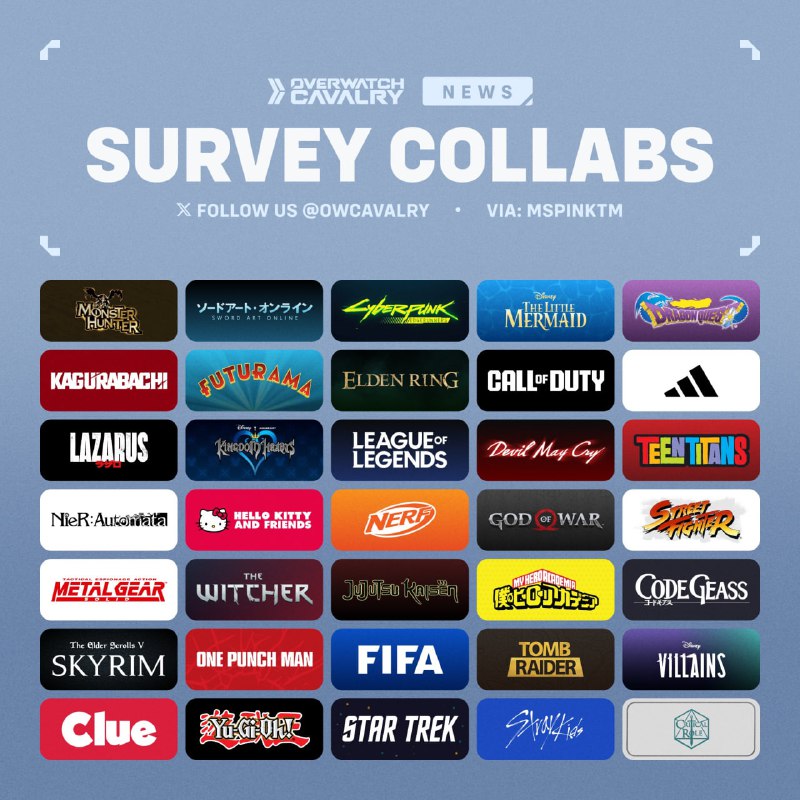 ❗️Новые возможные коллаборации в Overwatch из официального опроса Игроки из Китая получили опрос, в котором Blizzard спросили, какие коллаборации из списка они хотели бы увидеть. Напомним, что колла