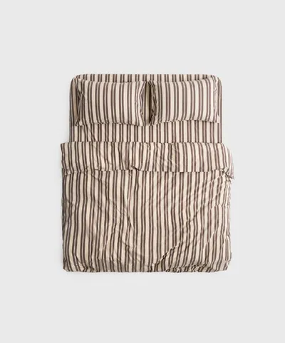 У меня мания на полосатое постельное белье, так это по-скандинавски! В МORФЕUS появился принт «древесная полоска», конечно, я уже себе такое заказала. А еще с этим принтом есть двустороннее одеяло-ком
