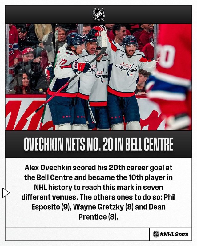 🚨 10-й игрок в истории НХЛ, забившим 20+ голов на 7 разных аренах лиги 🏒 ✨ Список тех, кто выше, короток: ▪️ Фил Эспозито (9 арен) ▪️ Уэйн Гретцки (8 арен) ▪️ Дин Прентис (8 арен) ✅ RUSSIAN MACHI