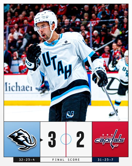 🦅 🏒 «Кэпиталз» проиграли «Юта Маммот»! 🏒 «Вашингтон Кэпиталз» потерпели поражение от «Юта Маммот» со счетом 2:3 в основное время матча. ✨ Александр Овечкин за игру нанёс четыре броска в створ и