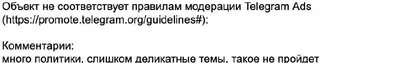 Ситуация с Telegram Ads выглядит очень странно и вызывает вопросы. Сегодня модерация отклонила наши объявления, сославшись на то, что канал @AteoBreaking затрагивает чувствительные и политические тем
