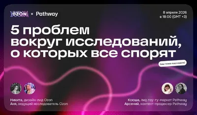 Хотите узнать, как устроены исследования пользовательского опыта в Ozon? Приходите на вебинар, который мы делаем вместе с командой Pathway 8 апреля в 18:00 О своей работе будут говорить (и спорить