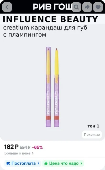Карандаш для губ с плампингом INFLUENCE BEAUTY Creatium, тон 01 за 182 рубля OZON https://ozon.ru/t/28P3kxD