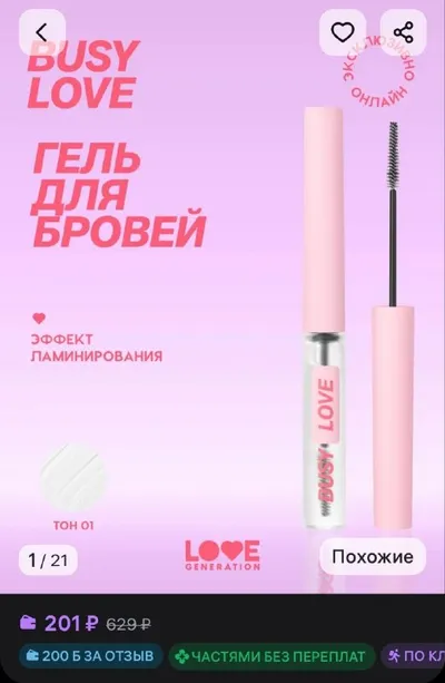 200 баллов дают за отзыв на гель для бровей LOVE GENERATION Busy Love, прозрачный WB https://www.wildberries.ru/catalog/839970477/detail.aspx?size=1261155721