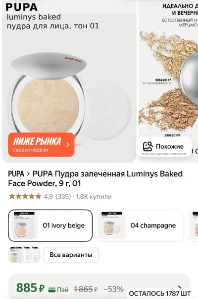 PUPA Пудра запеченная Luminys Baked Face Powder, 9 г, 01 за 885 рублей Яндекс Маркет https://market.yandex.ru/cc/968Yid?erid=5jtCeReNx12oajxUX1qMVzx