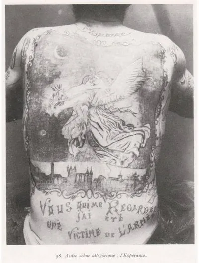 Французская тюремная татуировка начала XX века, изображающая аллегорическую сцену под названием «Надежда»