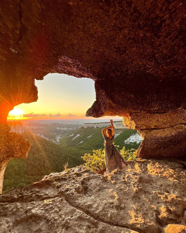 Такой закат! 😱🌄 Вы никогда не забудете!!! 💯 Где это? 😲 ⬇️⬇️⬇️ 1️⃣ Бахчисарайский район, село Ходжа-Сала 2️⃣ Дальше вы берёте джип 🚙 и поднимаетесь в горы ⛰ 3️⃣ на плато, пещерный город «Мангуп