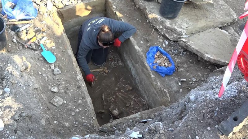 Старинные гробницы во время ремонта дороги обнаружили в Рустави Во время ремонта дороги на улице Санапиро в Рустави рабочие нашли старинные захоронения. Работы по асфальтированию приостановили и сооб