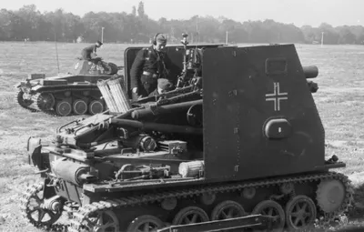 Внешне смешное, но дешёвое и добротное переходное решение. На чахлый PzKpfw I Ausf.B поставили мощное 15cm sIG 33.