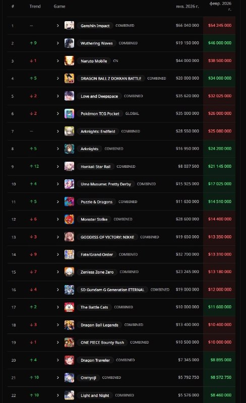 🤔 Доходы гача-игр за февраль