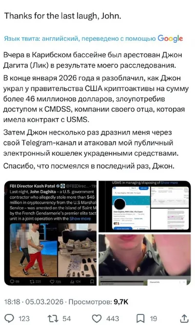 📌 ОГРАБИЛ ПРАВИТЕЛЬСТВО США НА $46МЛН Помните молодого парня, что ограбил правительство США благодаря доступу его отца к конфискованным средствам? Сегодня, Джон был арестован ФБР, при нем были чемо