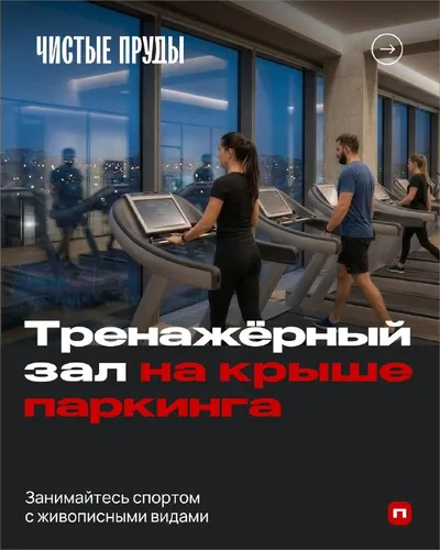 Чистые Пруды — тренируйтесь с правильным видом ➡️ В Чистых Прудах фитнес-центр расположится на верхнем уровне паркинга. Это будет приватный этаж с комфортным доступом Здесь среда сама мотивирует к