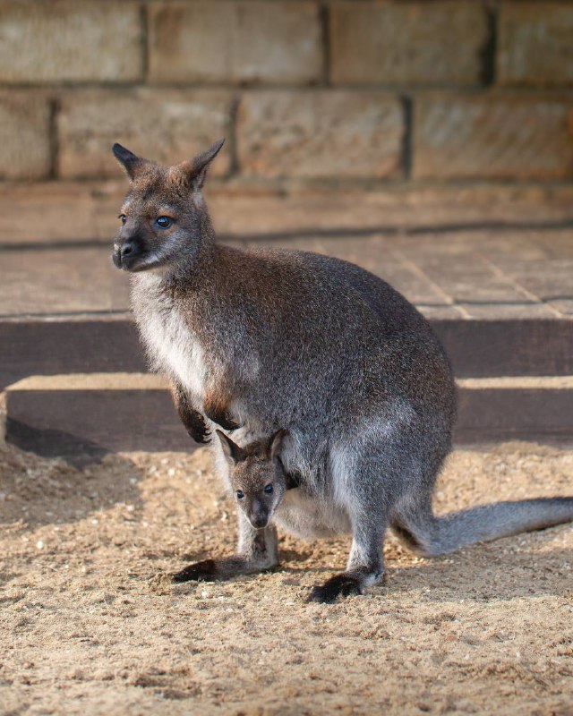 🦘 Наш кенгурёнок подрастает и всё больше интересуется окружающим миром. Пока что кенгурёнок не спешит покидать уютную мамину сумку - зато его любопытная мордочка почти всегда выглядывает наружу. Он