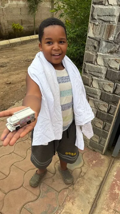В этот раз когда я поехал в Африку, Патрик (мой сын) передал игрушки, что бы я раздал детям.