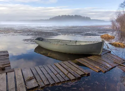 Весна на Ладоге, иногда лёд трогается только в Мае, когда от температурных перепадов уже хорошие туманы. Акварельное утро в шхерах