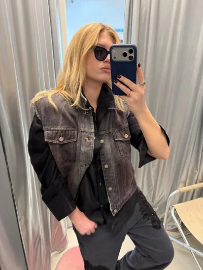 Алина и правда заслуживает звания мастера спорта по обращению с жилетами! Монохромный образ с «рабочей» опцией от Magliano получился весьма выразительным: в него вошли рубашка Barena Venezia, джинсы C