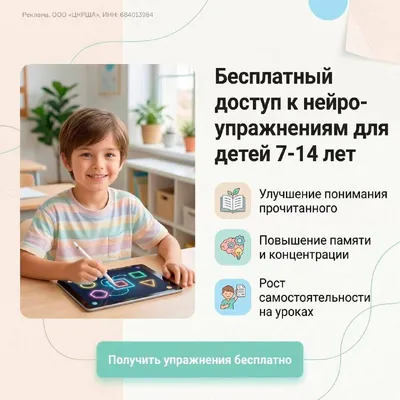 Открываем бесплатный доступ к нейро-упражнениям для развития интеллекта у детей 7–14 лет. Это короткие занятия в игровой форме, которые помогают развивать внимание, память и мышление ребёнка. Всего