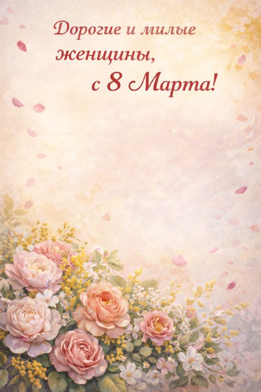 🌷 Дорогие и милые женщины, с 8 Марта! Пусть в вашей жизни будет больше спокойствия, тепла и добрых людей рядом. Пусть здоровье будет крепким, в доме царят уют и мир, а близкие радуют заботой и вним
