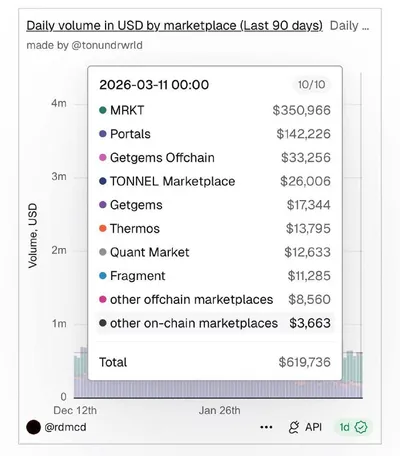 ПАДЕНИЕ ТОРГОВЫХ ОБЪЁМОВ НА МАРКЕТАХ Торговая активность на площадках идёт на спад. 🎁MRKT — $350 966 ❤️Portals — $142 226 🙏GetGems Off — $33 256 🥈Tonnel — $26 006 🙏GetGems — $17 344 По оценкам