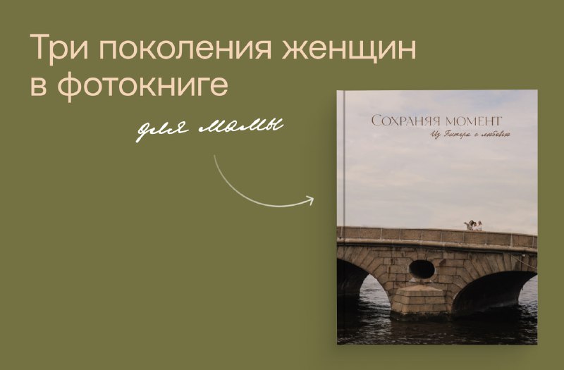 Продолжаем рассказывать про фотокниги, которые наша команда дарит своим значимым женщинам на 8 Марта. Сегодня — особенный альбом, в котором запечатлены три поколения женщин одной семьи. Наш дизайнер