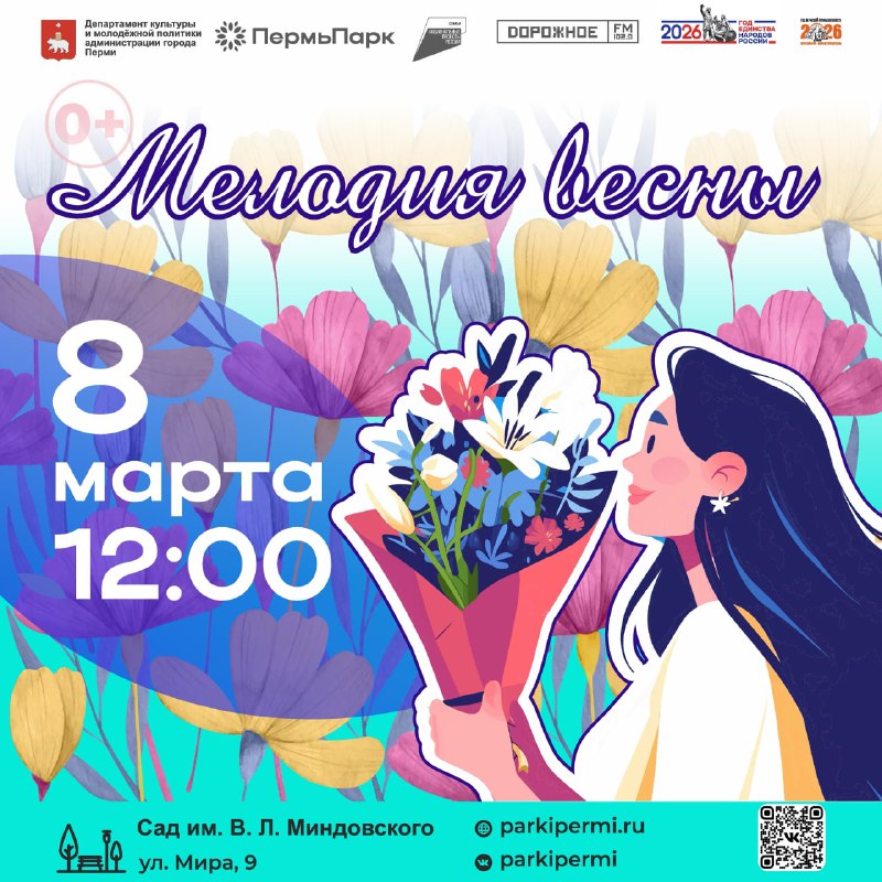 Программы, посвященные Международному женскому дню в парках ⏰8 марта (вс) 📍Сад им. В.Л. Миндовского; парк им. А.П. Чехова; парк «Балатово»; парк «Счастье есть» 💵Вход свободный 🌸12:00 - Сад им. В.