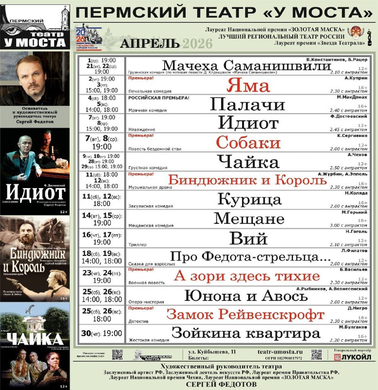 🎭Афиша спектаклей в театре у Моста на Апрель 👣Адрес: ул Куйбышева, 11 Telegram | MAX | ВКонтакте