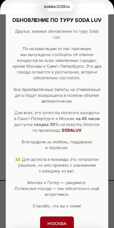 ⚡️РАЗЫГРЫВАЕМ 4 БИЛЕТА = 4 ПОБЕДИТЕЛЯ. 8 марта — SODA LUV в Концерт Холее Свобода, Пермь. Презентация альбома -5LUV5 + все хиты — без пауз и без “просто послушать”. Это тот самый вечер, когда зал ка