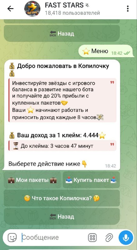 ⭐️FAST STARS ПРОМОКОД 👑 GOOD_MART👑 🤩🤩🤩🤩🤩🤩🤩 250 по 0.70😀 🔗Ссылка для регистрации https://t.me/STARS_FAST_bot?start=5256200563 🛍 Открыла пакет в копилочке и теперь у меня в стейк
