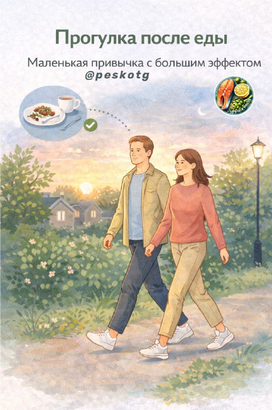 🚶♀️ Прогулка после еды — маленькая привычка с большим эффектом Мы часто ищем сложные схемы: что съесть, сколько шагов сделать, как ускорить метаболизм. А иногда достаточно одного простого действия