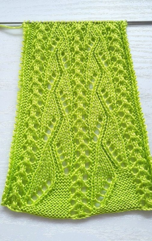 Ажурный узор для круглой кокетки Узор вяжется снизу вверх: Набрать 26 п. и вязать согласно схеме, на которой приведены только лиц. ряды. В изнаночных рядах петли вязать по рисунку, накиды - изнаноч
