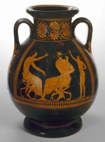 Самый весенний комикс Эрмитажа - "Пелика* с ласточкой" (кон VI в. до н.э.). Надписей не видно, но, поверьте, они есть. Просто очень тёмные. Сидящий на табурете юноша тычет пальцем в птицу и на чисто