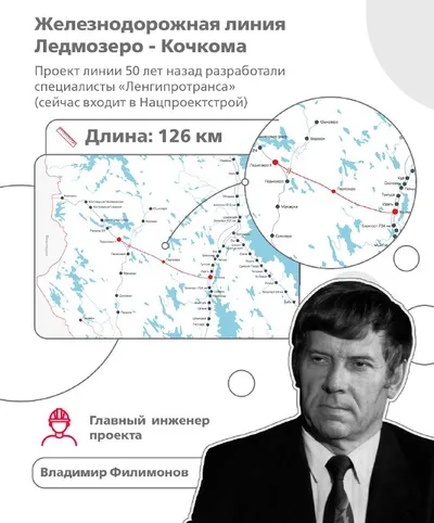 50 лет назад специалисты «Ленгипротранса» (сейчас входит в «Нацпроектстрой) разработали проект железнодорожной линии Ледмозеро – Кочкома в Республике Карелия. Линия прошла в труднодоступных районах