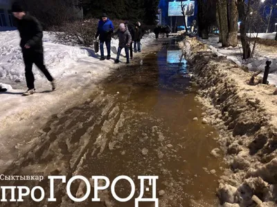 Сыктывкарцы негодуют: «Сегодня на улице было +10. Все таяло, тротуары превратились в непроходимые реки. Идти было негде, приходилось прыгать по небольшим снежным островкам. На Коммунистической, ряд