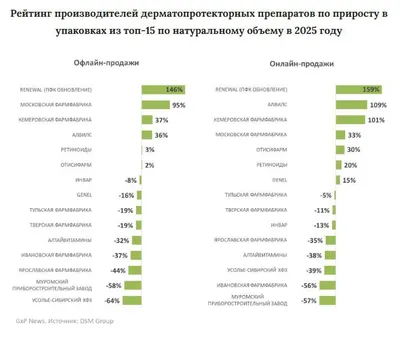 В 2025 году аптечные продажи дерматопротекторов составили 8,7 млн упаковок на сумму около 2,5 млрд руб. Динамика к 2024 году составила -12,1% в упаковках и +13,6% в рублях, подсчитали в DSM Group.