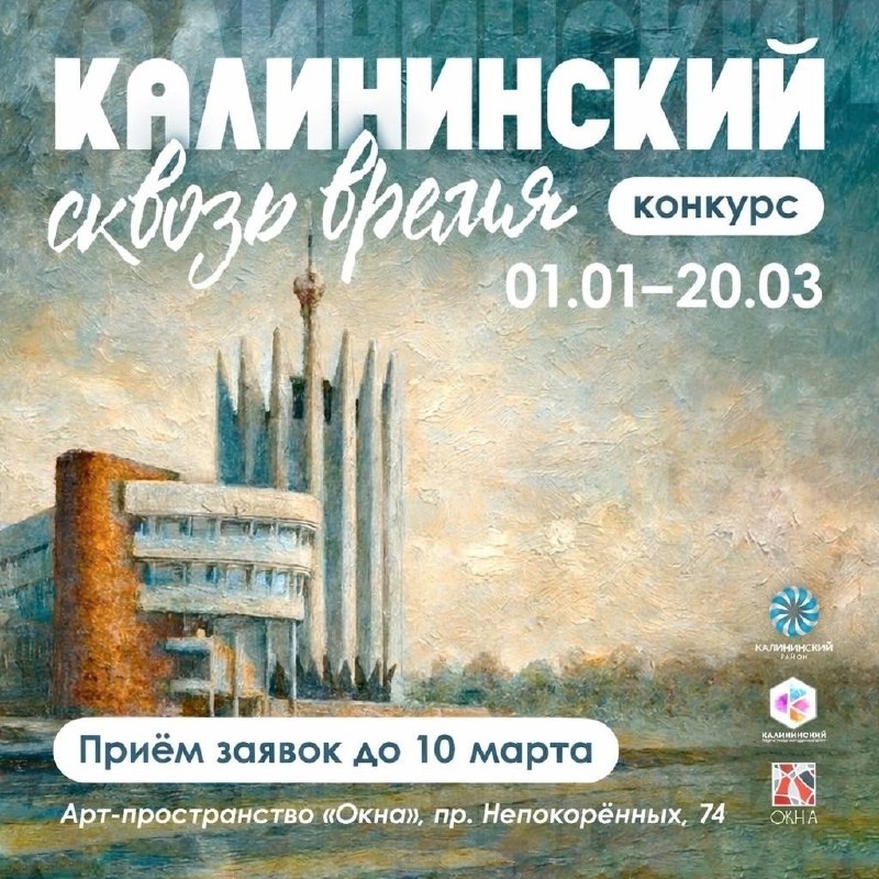 Продлен прием заявок на конкурс «Калининский. Сквозь время»! Арт‑пространство «ОКНА» приглашает художников и фотографов принять участие в конкурсе, посвящённом 90‑летию Калининского района Санкт‑Пете