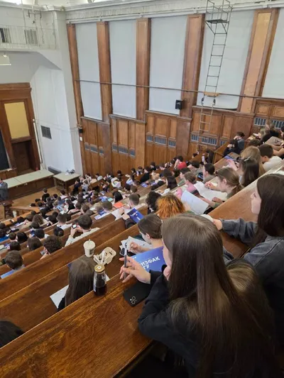 По субботам физфак — место притяжение будущих студентов! Так в субботу проходила лекция Сергея Евгеньевича Стрыгина по подготовке к ЕГЭ 2026. Поступайте правильно 👩🔬
