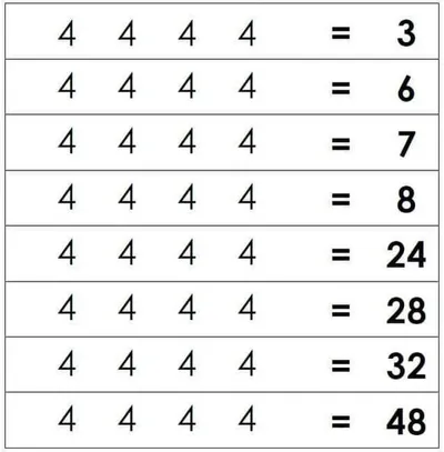 🍃 Арифметические головоломки 🍃 Мы подготовили для вас серию увлекательных заданий. Суть проста: используйте ровно четыре одинаковые цифры, расставляйте между ними арифметические знаки (+; −; ×; ÷