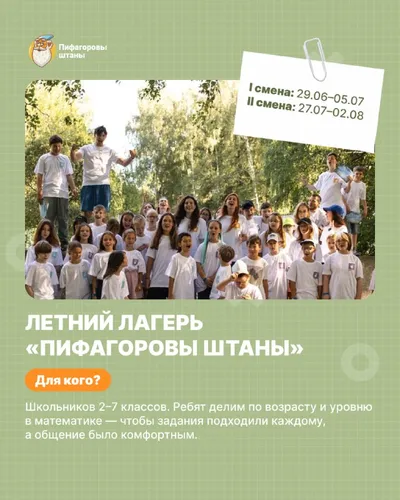 ❇️ ДО ПЕРВОЙ СМЕНЫ ЛЕТНЕГО ЛАГЕРЯ «ПИФАГОРОВЫ ШТАНЫ» ОСТАЛОСЬ РОВНО 1⃣0⃣0⃣ ДНЕЙ ❇️ Лето — время, когда дети могут спокойно и глубоко работать с мышлением: без спешки, контрольных и перегруза. В наш