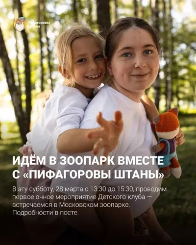 ВСТРЕЧАЕМСЯ В ЗООПАРКЕ ВМЕСТЕ С «ПИФАГОРОВЫ ШТАНЫ» 😎 В эту субботу, 28 марта с 13:30 до 15:30, проводим первое очное мероприятие Детского клуба — встречаемся в Московском зоопарке. Это будет лёгкий