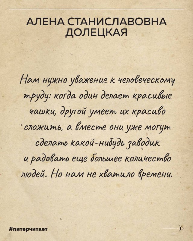 Сегодня — слова Алены Станиславовны Долецкой, российского журналиста, публициста и переводчика. 👉 ПИТЕРЧИТАЕТ