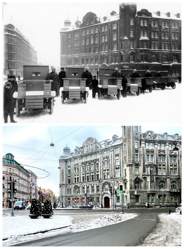 Колонна автомобилей фирмы «Ариес Дикси» / Австрийская площадь 💡 ~1916 и 2026 год 📢 ПИТЕРСКИЙ ГИД #тогда_сейчас