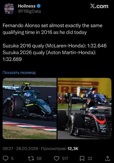 Фернандо Алонсо в сегодняшней квалификации уступил собственному времени на МакХонде 2016 года. Вы находитесь здесь. @pitlanewalk